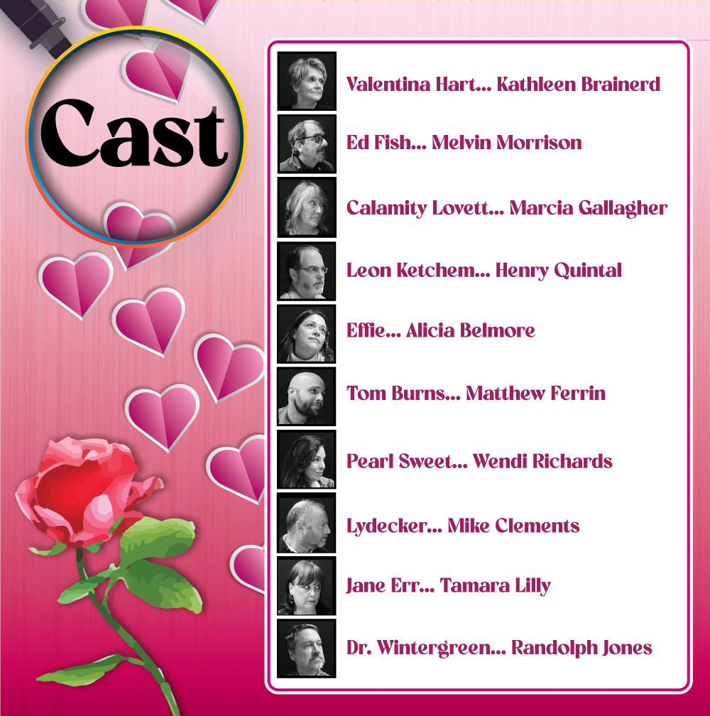 Valentina Velour, the Queen of Romance Fiction, opens her Honeymoon House to a television program and her closest (most envious) writer friends. Unfortunately, someone has left a dead man in the closet and a wacko called The Rose Killer is going around bumping off love scribblers! Confusion and madness abound as vitamin fanatics, cops, literary agents and writers collide to solve this whodunit romantic-comedy-murder-mystyery. Love Is Murder is presented by arrangement with Concord Theatricals on behalf of Samuel French, Inc. http://www.concordtheatricals.com.